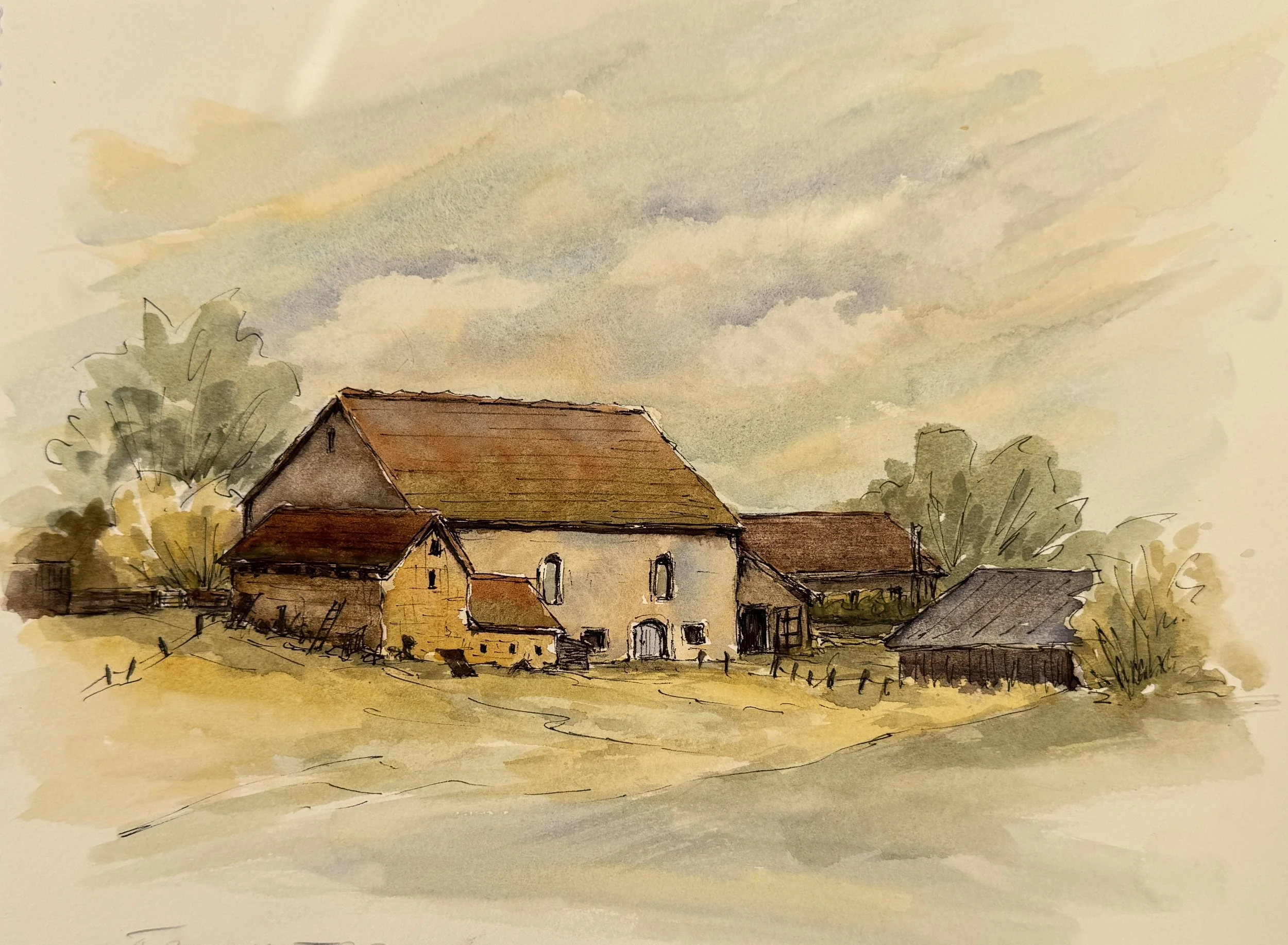 Description: Ink line and watercolor wash demo
