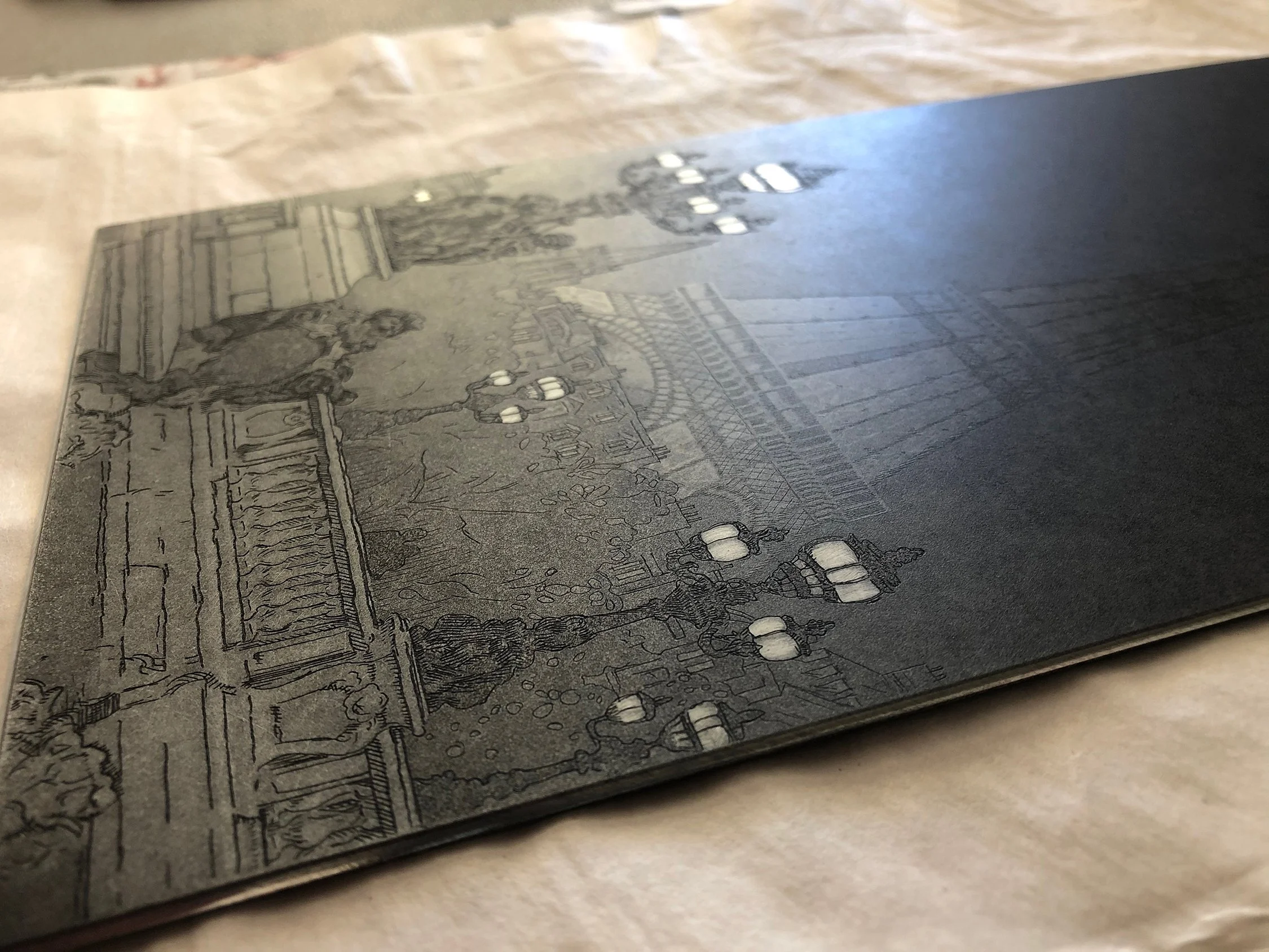 Description: See how etchings and intaglio prints are made! David will be demonstrating the inking, wiping and printing of an etching using the etching press.